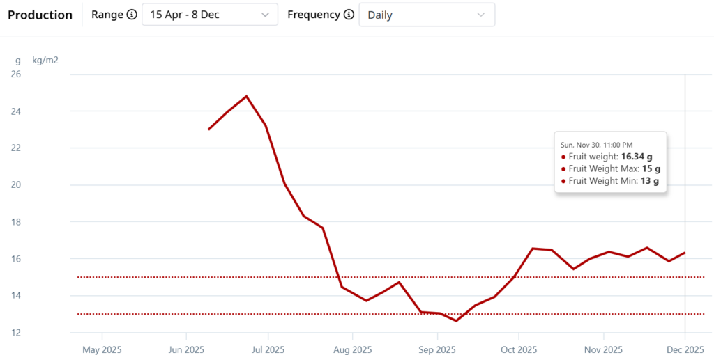 Fruit weight was higher than the target range most of the time.